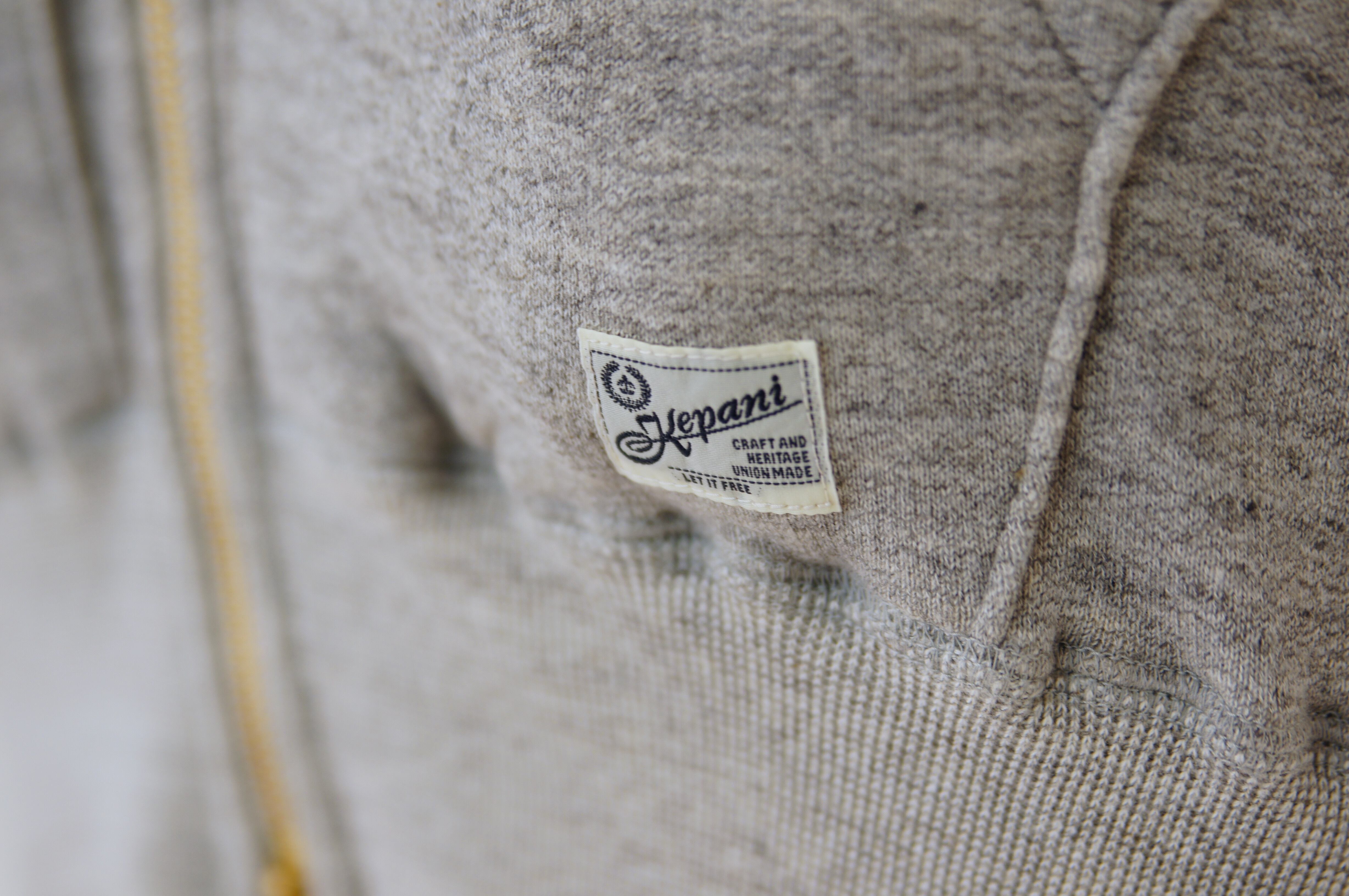 一般的に吊り編み機で作られるスエットを、ケパニはふんわりとした柔らかさを再現させるために「旧式のシンカー織り機」を使い、職人技による細かい調整をして作られます。