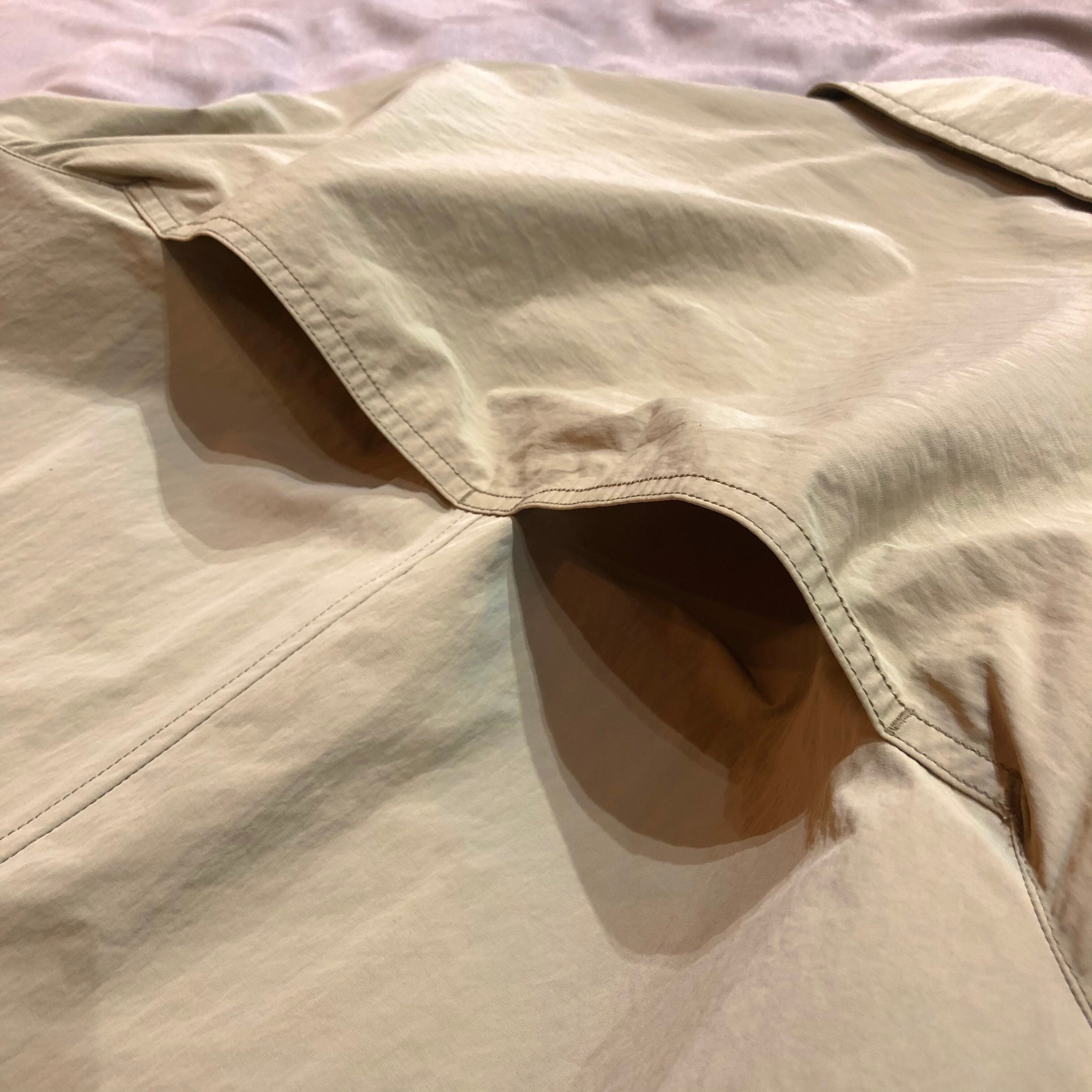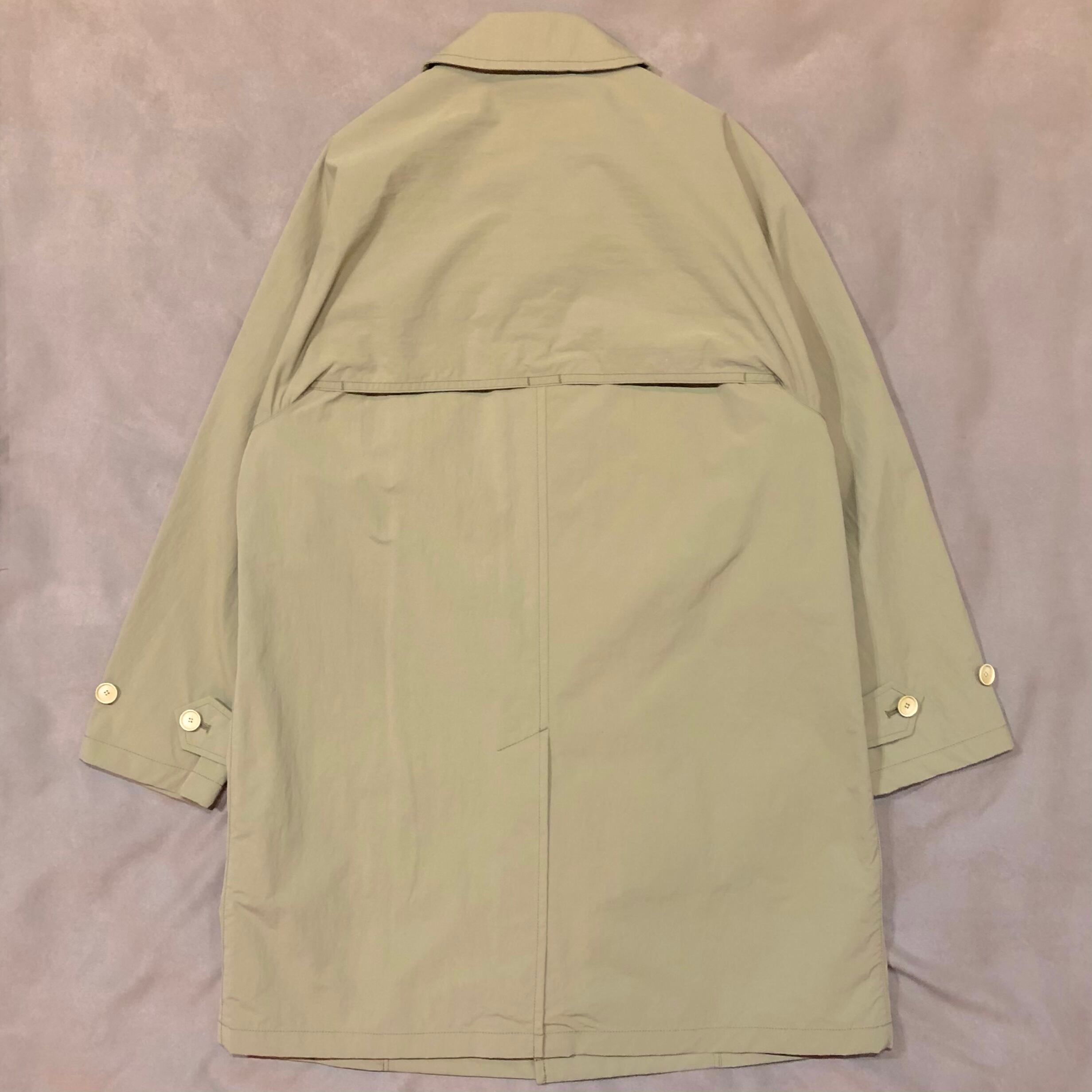 フレンチアーミーのコートをリプロダクトしています。ナイロンではありますが、ワッシャー加工によるナチュラルなシワ感で光沢も無く、天然素材のような風合い。撥水加工済みです。