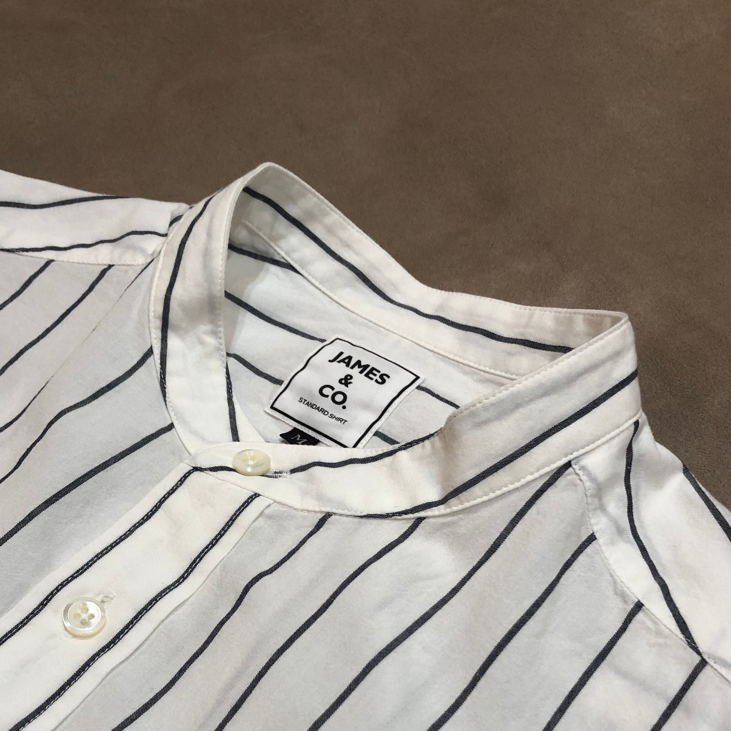 JAMES & CO. STANDARD SHIRT / Band Collar Shirt / WHT ST (ジェームスアンドコー スタンダードシャツ / バンドカラーシャツ / ホワイトストライプ)