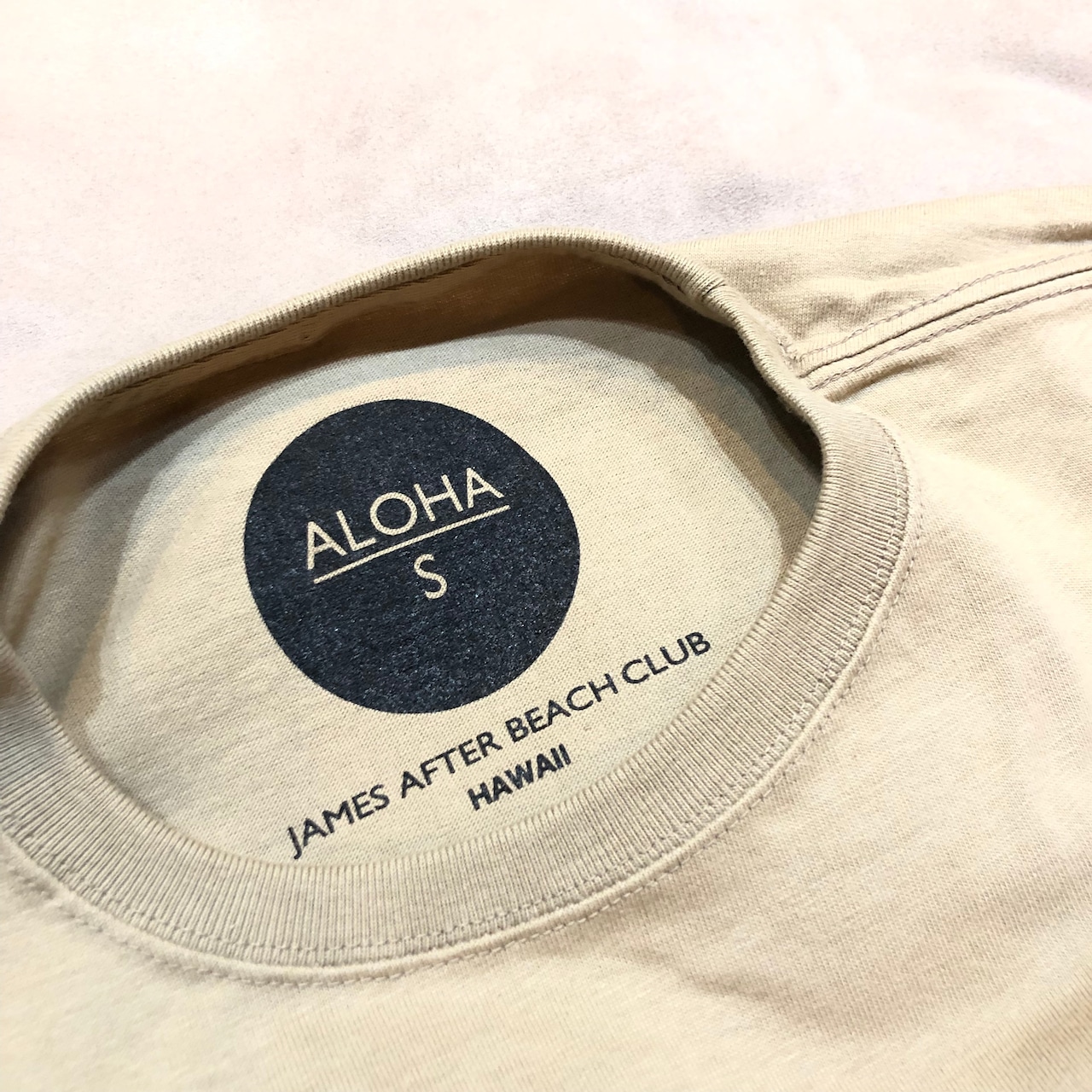 フロントには目立つように『ALOHA』のプリント、バックプリントには『JAMES AFTER BEACH CLUB』のプリントが施され、アクセントになっています。