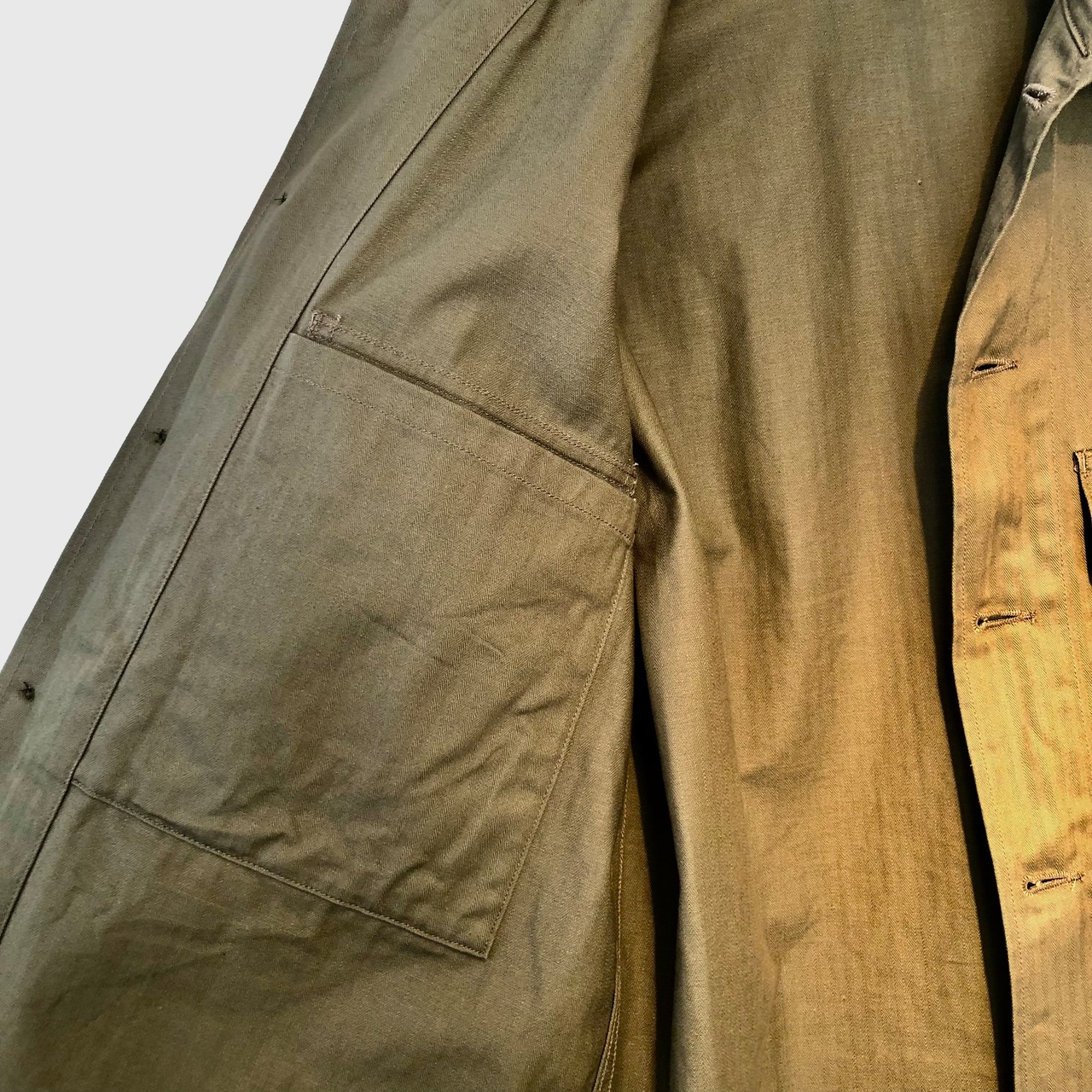 素材はシャットル機で高密度に織り込んだ50年代のUSミリタリーヘリンボンをモチーフに作成した、オリジナルヘリンボーン地を使用。