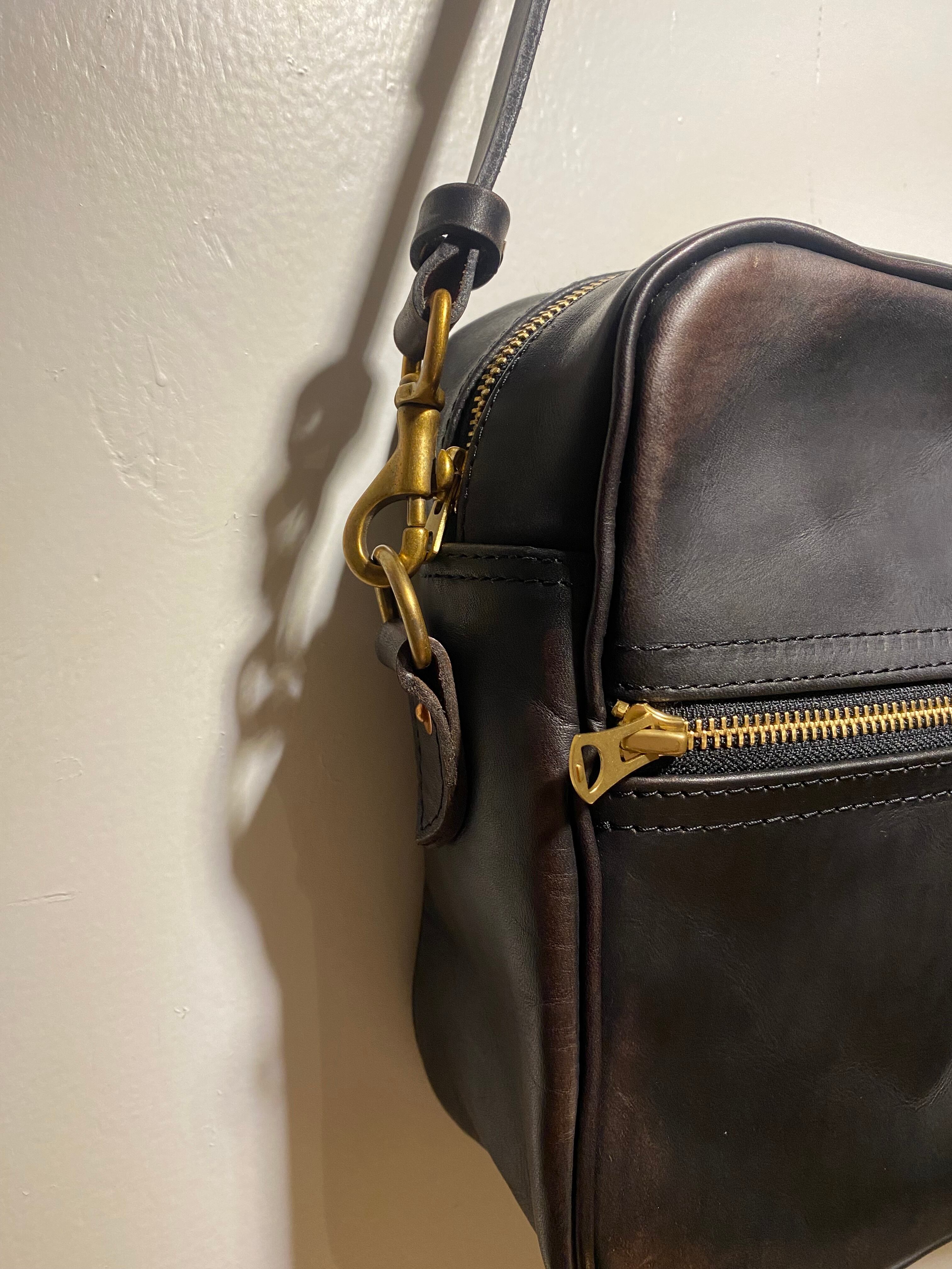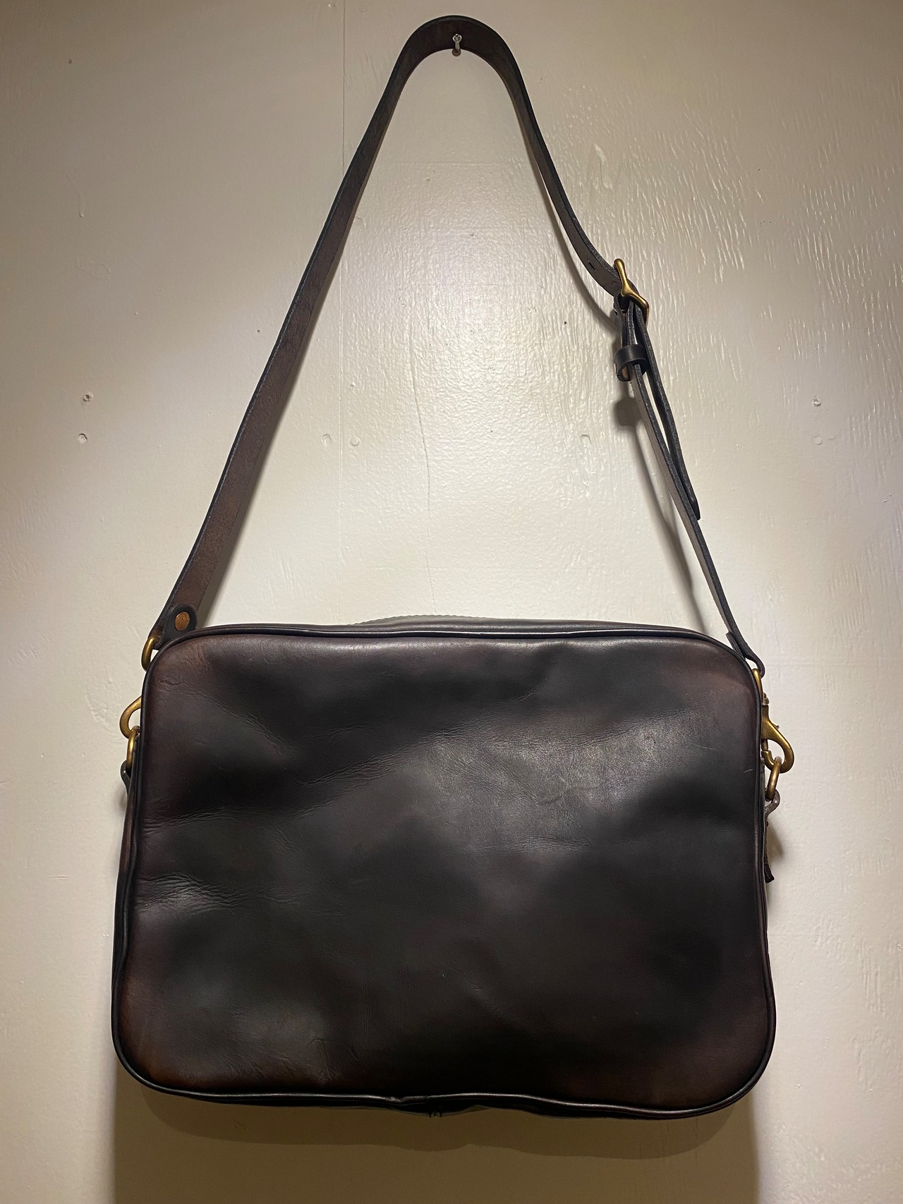 スクエア型でお洋服に合わせた際の収まりも良く、ショルダーストラップも革になりますので